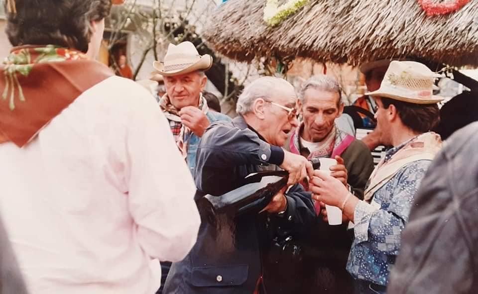 Il nonno Giovanni che versa felice ai cantori il suo vino.