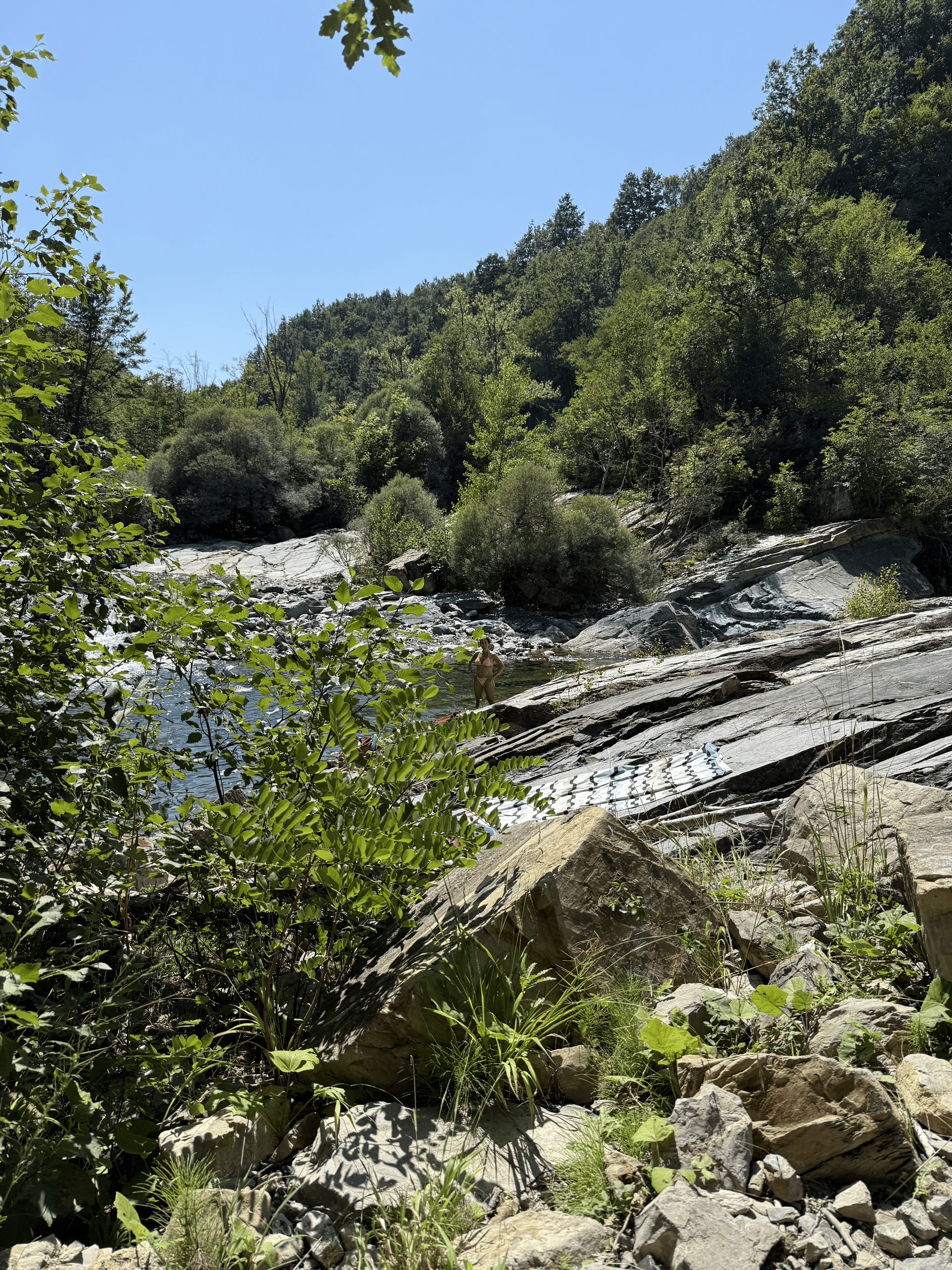 A mezz’ora d’auto c’è anche un angolo incantevole dove fare il bagno in un fiume cristallino immerso nel verde.